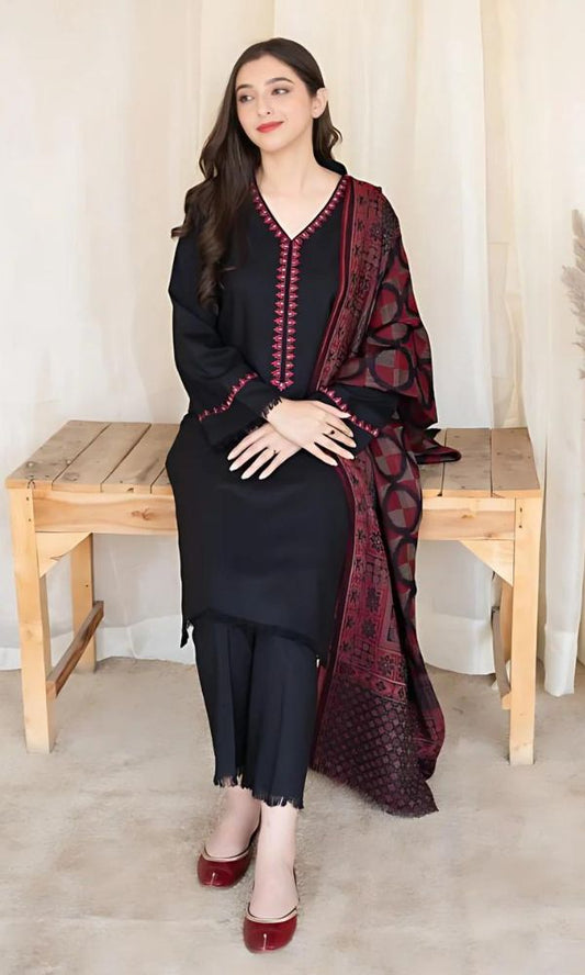 Maria B. 157- 01 3PC Luxury Dhanak |Embroidered Dhanak Shawl