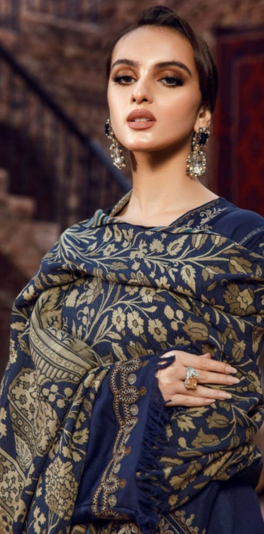 Maria.B D # 107 - 01 | 3PC Luxury Dhanak | printed wool Shawl