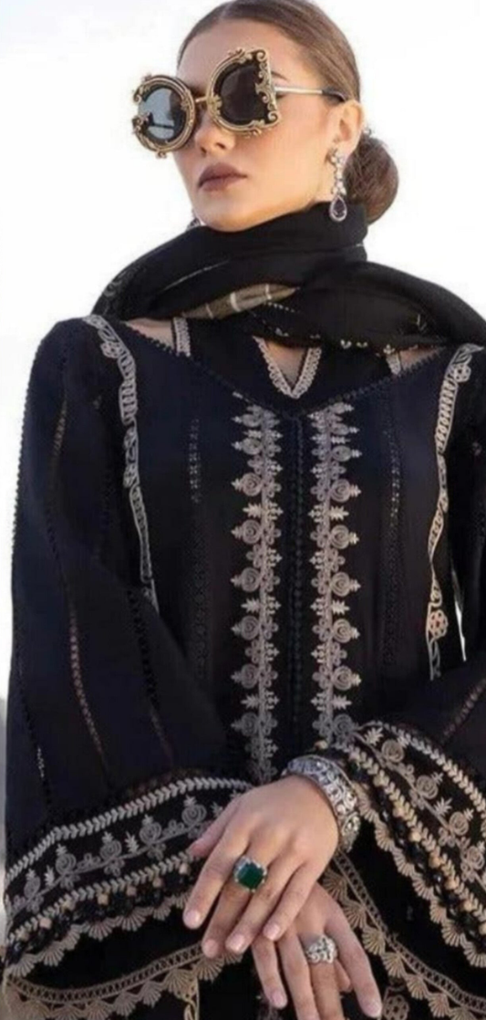 Maria.B D # 105 - 01 | 3PC Luxury Dhanak | printed wool Shawl
