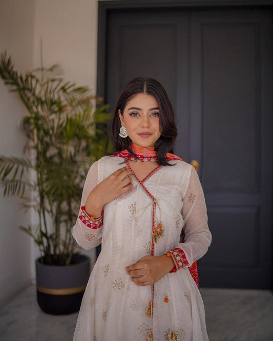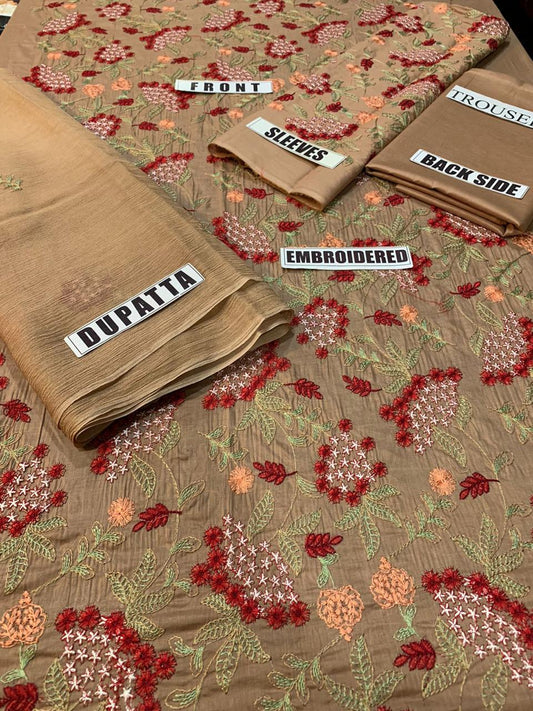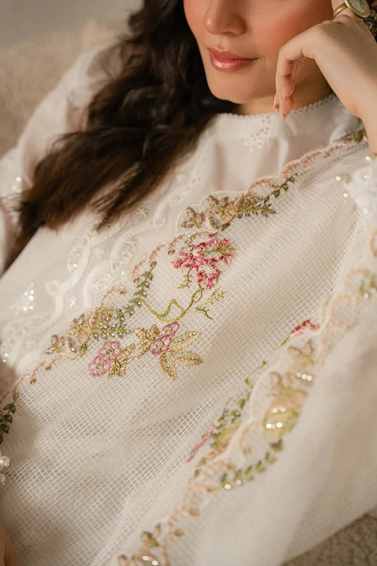 Zara Shahjahan D # 128 -01 | 3PC Luxury Lawn | Bamber Chiffon Embroidered Dupatta