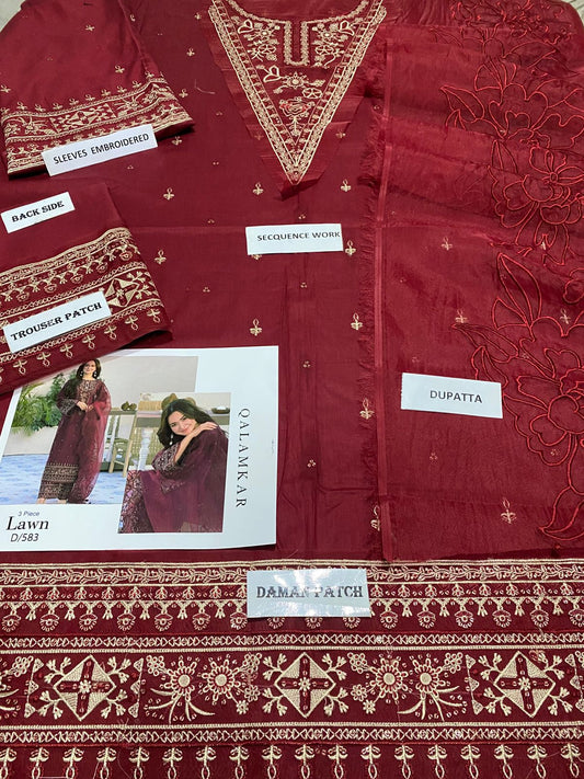 Qalamkar D # 290 - 01 | 3PC Luxury Lawn | Organza Heavy Embroidered Duppata