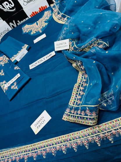 Shirt (2.5m): Heavy sequence Embroidered with gala and daman