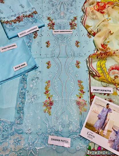 Qalamkar D # 291 - 01 | 3PC Luxury Lawn | Chiffon Printed Duppata