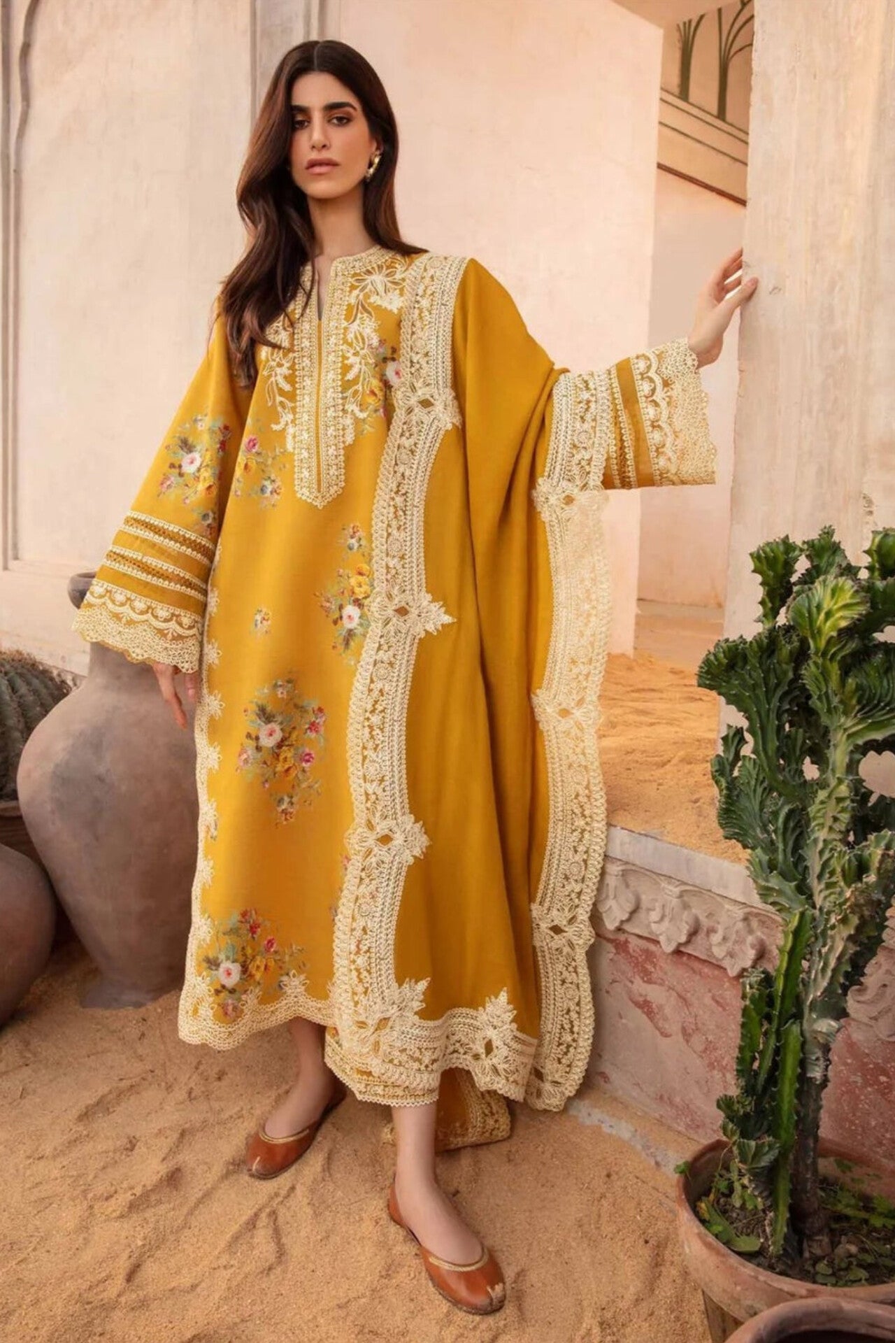 Duppata (2.25m): Embriodered Khaddi Net Dupatta