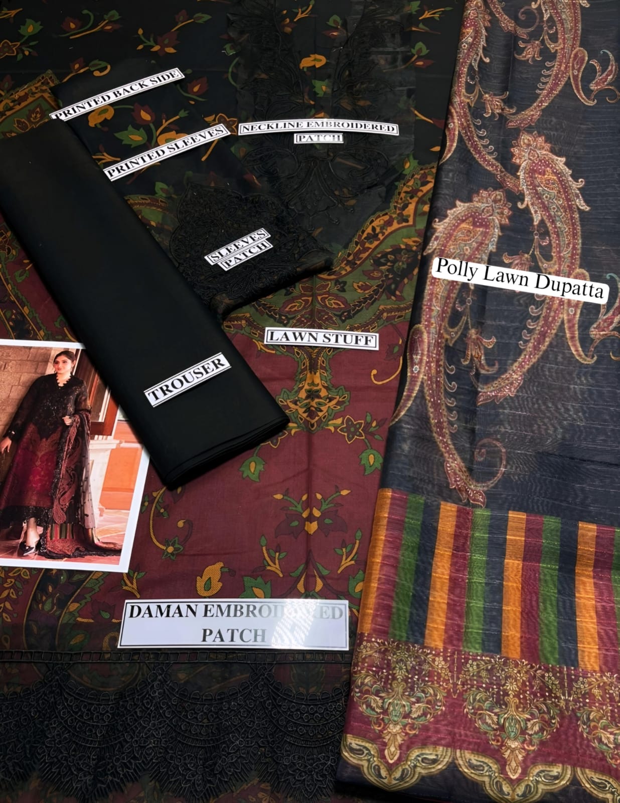 Sleeves (0.25m): Embroidered patch Duppata: (2.5m): printed poly lawn upatta