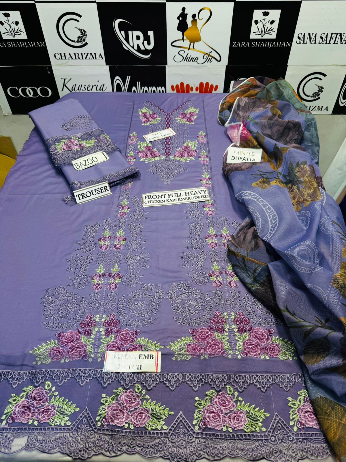 Zara Shahjahan D # 246 - 01 | 3PC Luxury Lawn | Slub Monar Juggard Printed Dupatta