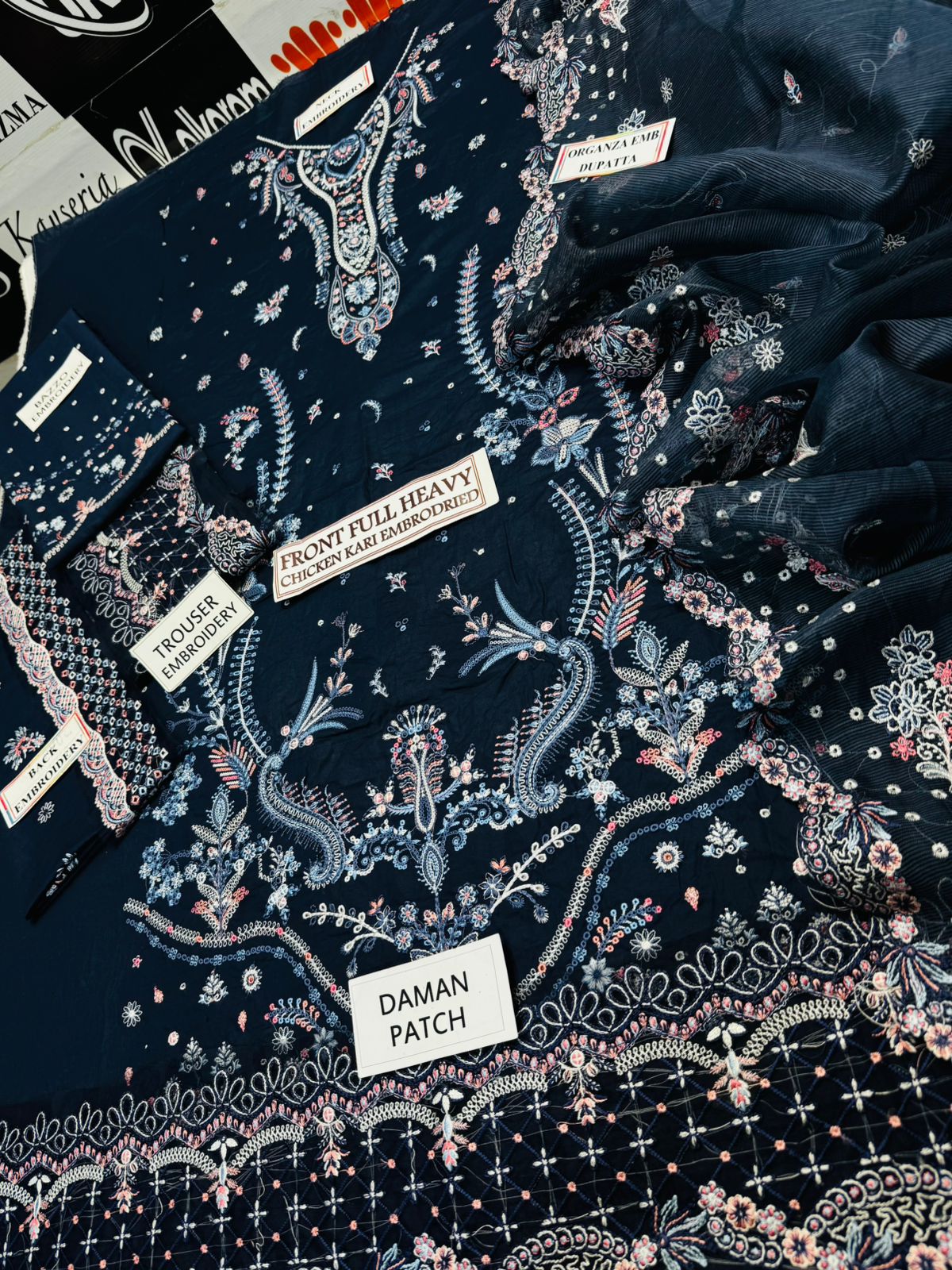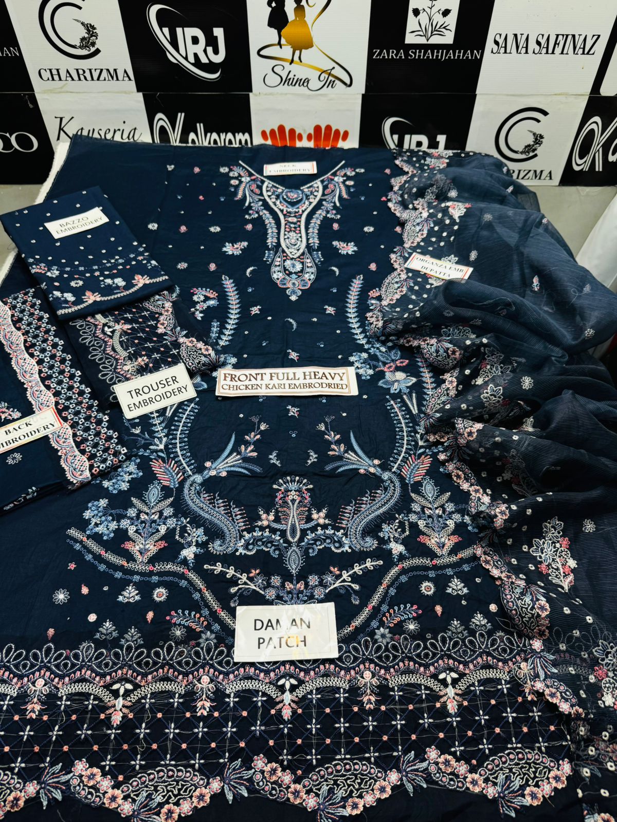 Zara Shahjahan D # 285 - 01 | 3PC Luxury Lawn | Slub Khaddi Duppata with Embroidered 4 Pallu